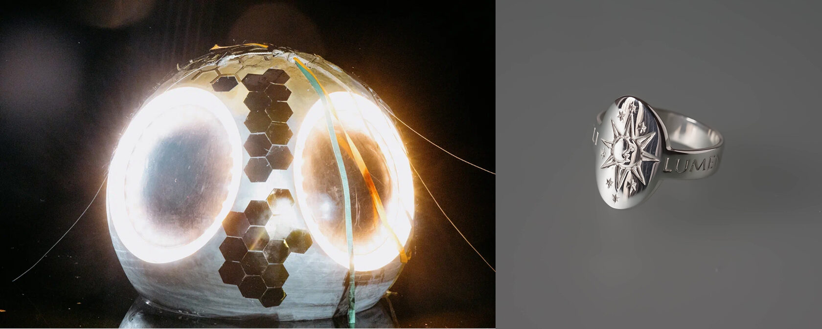 Кольцо «Луна» от Dasha Fedorova — украшение, будто созданное для этой ночи. На нём выгравирована латинская фраза Coeli Lumen — «небесный свет». Мерцание луны на кольце можно сравнить с холодным сиянием космоса. Вместе эти объекты искусства сплетаются в единый световой рассказ, который «Ночь света» дарит каждому гостю: о стремлении к звёздам и умении нести свой свет даже в самую тёмную ночь.