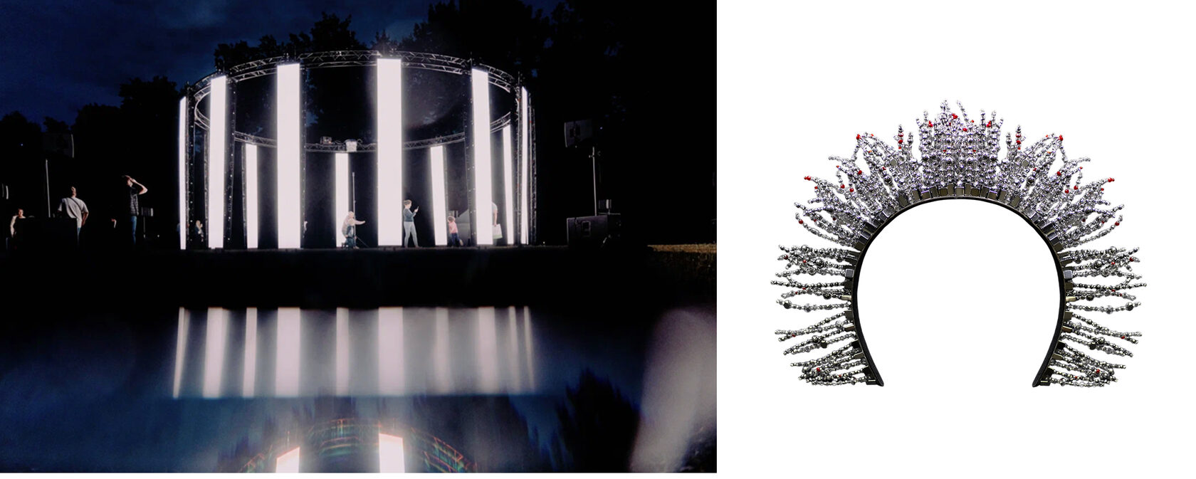 Похожим образом корона Cittadina бренда Electric Milk объединяет материалы и детали — гематит, стекло и бисер — в сияющую конструкцию, восприятие которой меняется при каждом движении световых лучей.